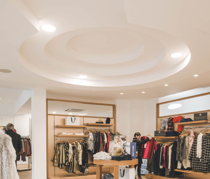 Megaman’s LEDs were specified for global fashion brand Benetton’s new store in Northern Ireland’s town of Ballymena. The manufacturer of high-performance, low energy lighting provided a solution that was energy efficient, low maintenance, maximised the aesthetics of the store and provided a consistent, bright quality of light that enhanced the appearance of the merchandise. Benetton is known for its vibrant, colourful clothes, so the owner of the store required a space that was bright and would entice the customer inside. A former post office in the large town of Ballymena in County Antrim, provided the necessary 3,000 square feet that could be transformed into retail space. The 1950s two-storey building was stripped out and a large glazed panel employed on the front elevation to draw in daylight. The ground floor was refurbished to create a modern, light and airy space for the display of Benetton’s women’s and children’s clothes while the first floor was used as a store. Creating a bright interior was key to the overall concept. It was considered that MEGAMAN’s ZEKI multi-head gimbal luminaires together with other specified products, would meet the challenge of creating an even and bright distribution of light. Michael Williams, Director of Williams Creative Design Architects, designer of the Benetton store said: “Given that there are no windows in the shop apart from the glazed façade, we didn’t want customers to feel as if they were walking into a cavernous space. The ZEKI LEDs create a consistent quality of light with no changes in light levels, which is exactly what we wanted.” Megaman’s ZEKI luminaire was also the first choice for the Benetton shop due to its modular frame and multi-directional tilting, which lends itself to easy adjustment. Fifty-six, one head frame 10.5W ZEKI luminaires were specified and installed in the suspended ceiling throughout the store. Paul Howie, Director of T&E Howie Ltd, lighting designer and supplier said: “We recommended the ZEKI luminaires because the combination of its high lumen and tilted design meant that it was ideal for this project and gave the client lots of flexibility. If the client wants to move display stands around the retail space all he has to do is move the downlight and position it to illuminate the clothes. We’ve used Megaman products for many projects and we particularly like their robustness and high quality. Also, the technical backup that Megaman provides is really supportive.” The ZEKI luminaire was also a popular choice due to its unobtrusive design. Michael Williams: “I like the discreetness of the ZEKI lighting, which is very subtle. The spotlights have been twisted to focus on wall displays and draw attention to the merchandise. I didn’t want the lighting to take the customer’s eye away from the clothes. It has been a very successful project.” According to Paul Howie, the client had never used LEDs before, but was easily convinced due to the combination of minimal maintenance, low running costs, a five-year warranty and the environmental benefits of LED technology. Paul Howie: “It was a no brainer for the client to use the MEGAMAN ZEKI product. He has been so happy with the result that he plans to use the ZEKI luminaire for background lighting on two further Benetton stores in Northern Ireland that are currently at concept stage.” Other News < >